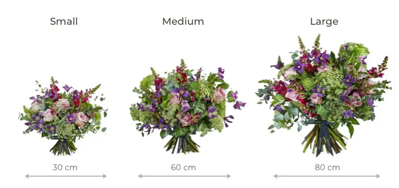 Please note – the bouquet pictured represents a medium size. Whilst we make every effort to source the exact ingredients, occasionally it may be necessary for our florists to substitute with a similar stem.